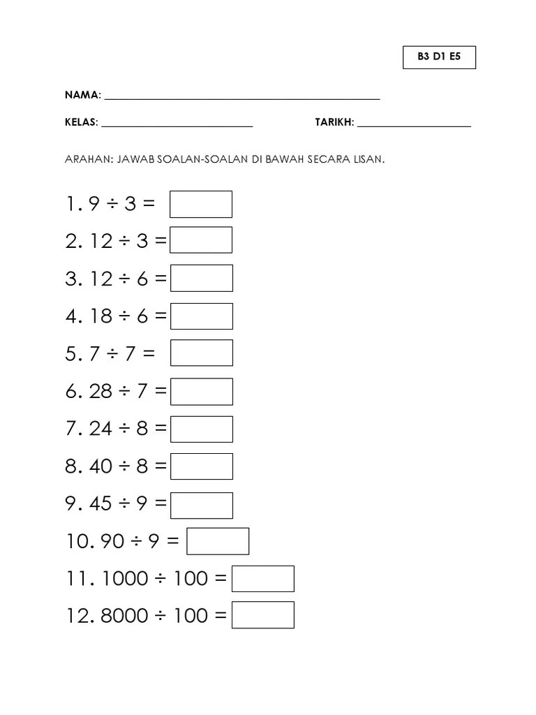 107, tahun 5 matematik : Add to my workbooks (1) Himpunan latihan topikal matematik tahun 3. Seperti yang telah dinyatakan di dalam perkongsian lepas, sifir sering digunakan di dalam operasi darab dan bahagi. Tarikh kelas masa bidang tajuk standard kandungan standard pembelajaran objektif pembelajaran aktiviti nombor dan operasi bahagi